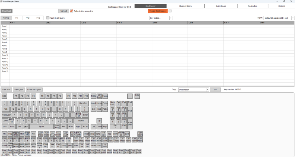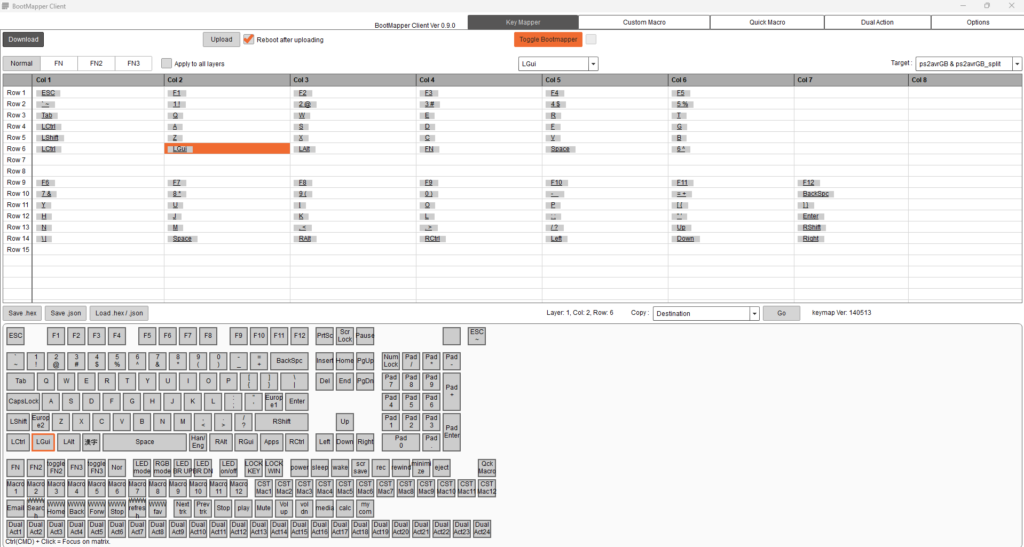 BootMapperClientを経由して、以下のキーマップを取り急ぎ設定した。