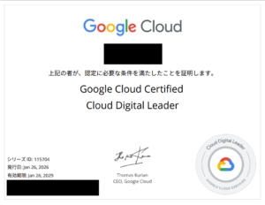 Google Cloud Digital Leaderに合格したのでライフログ。GCP Google Cloudの知識つけていく必要があるため、サービス名基礎理解の機会を兼ねて受験。AWSのCloud Practitioner相当のため、特に詰まる所なし。